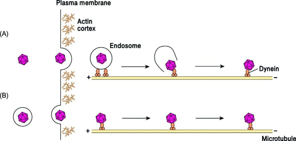 replication. This course of is termed intracellular trafficking. - The motion of nearly all of viruses inside the cell use microtubules however some viruses have been described to make use of actin cytoskeleton of filament.