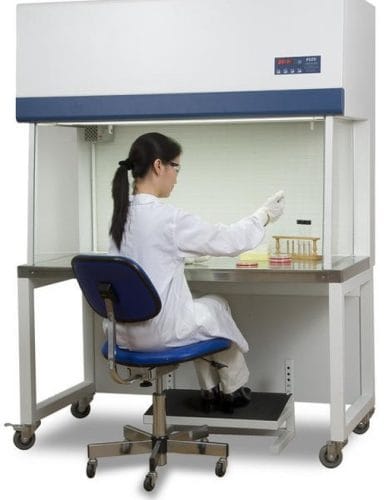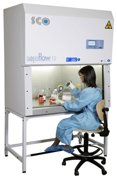 - Laminar Flow Cabinets: These provide the most sterile environment for the cells, but offer no protection to the operator. Filtered air enters at the back of the cabinet and is directed to the front, directly at the operator. The most sterile part of the cabinet is at the back.